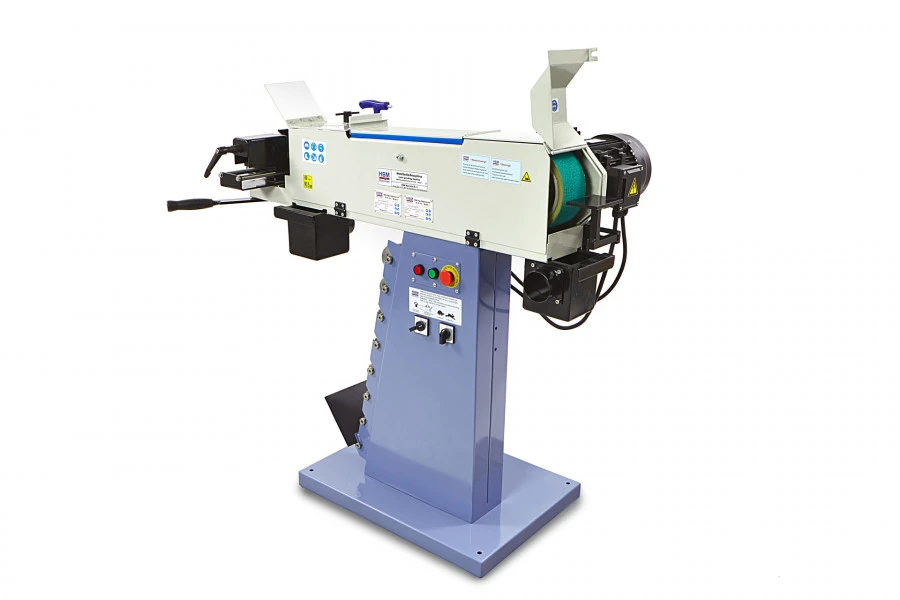 De machine heeft 3 bedienvlakken vooraan voor buizen (met buizenklem), bovenaan voor vlakslijpen en achteraan voor rondslijpen (met werkstuksteun) Buisuitslijper voor diverse metalen buizen en profielen Hoekinstelling buizenklem van 30 tot 90° Eenvoudige klemming en efficiënte werking met hefboomhendel. Prismabek met aanslag, instelbaar zonder sleutels. Sterke motor met 2 snelheden voor verwerken van zowel staal als inox. Snel wisselen van draairichting en snelheid met keuzeschakelaars. Kan aangesloten worden op een stofafzuiging dankzij de afzuigmonden. Gemakkelijke wissel van de schuurband en slijprollen. Veiligheden Voorzien van een aparte noodstop en afzonderlijke start / stopknop Nullastspanning Wegklapbare veiligheidsafscherming. Geschikt voor Buizen en klassieke slijpwerkzaamheden. Ateliers met beperkte ruimtes Werkplaatsen, onderhoudsdiensten, scholen en opleidingcentra.