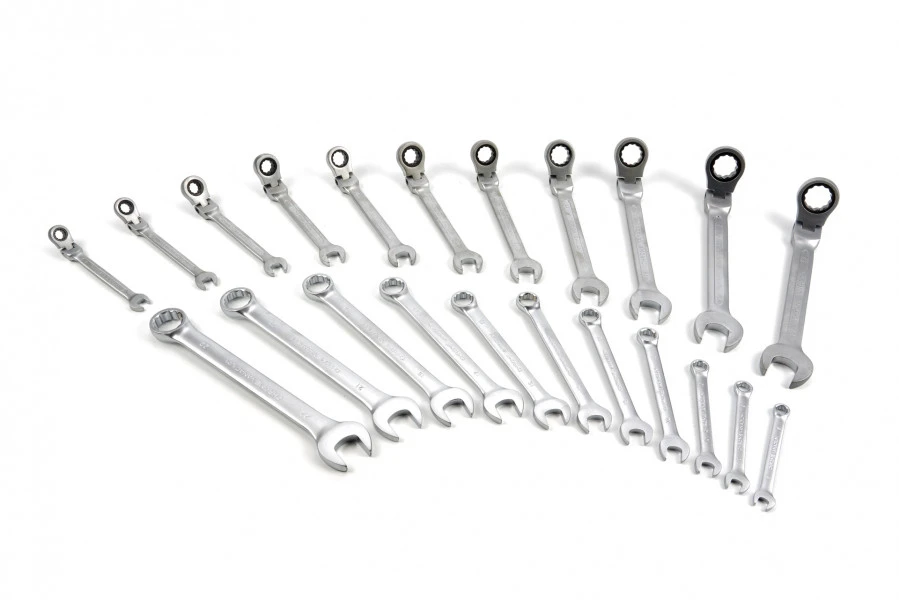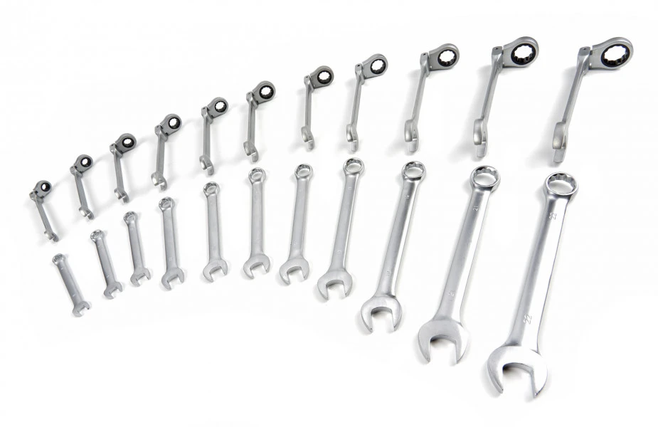 Geen werkplaats kan zonder ring- en steeksleutels. Met deze 22-delige ring-ratel-steeksleutelset van HBM heb je alle ring- en steeksleutels in de meest gebruikte maten direct bij de hand. De set bestaat uit 11 standaard ring-steeksleutels en 11 ring-steeksleutels met ratel en kantelbare kop. Hiermee kun je ook bouten op moeilijk bereikbare plekken vast- of losdraaien. De professionele foam inlay zorgt dat de sleutels slipvast worden opgeborgen en dat alle ring-steeksleutels hun vaste plek krijgen. Hoef je nooit meer te zoeken en grijp je nooit meer mis.
