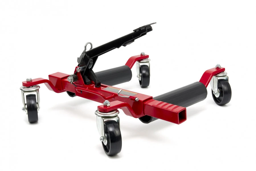 Je gebruikt de mover voor banden tot 18 inches breed. Daarbij ondersteun je de wagen makkelijk door middel van bakstenen, waardoor je een nog bredere diameter met dit systeem optilt. Je zet de wagen weer op de grond door de hendel op het pedaal aan te trekken. Hierdoor komt de voetratel vrij en duw je de armen van de mover automatisch uit elkaar. De stalen basis garandeert een uitstekende absorptie van schokken en zware gewichten. Stevige wielen aan de onderzijde van de automover geven je voldoende bewegingsvrijheid tijdens het klaarzetten en gebruiken van dit systeem.