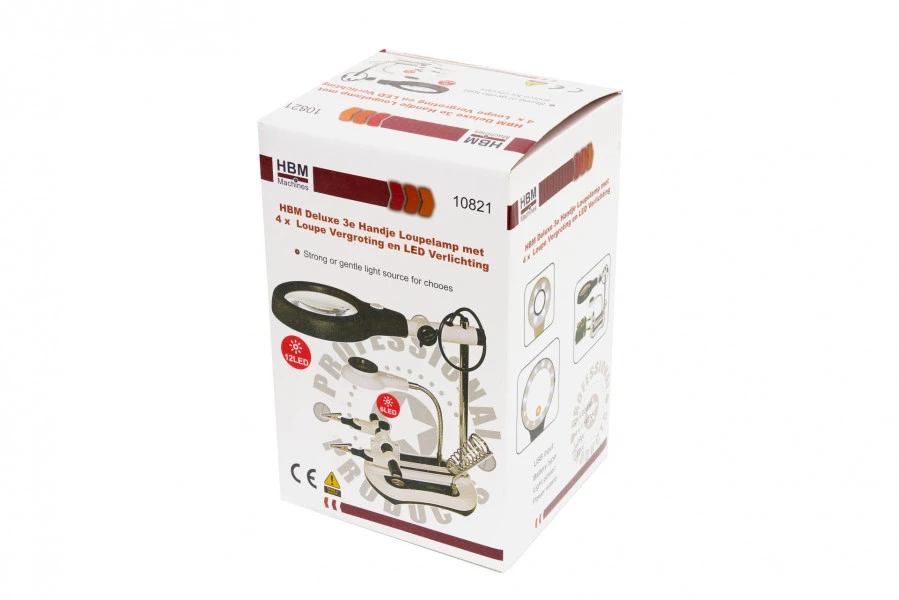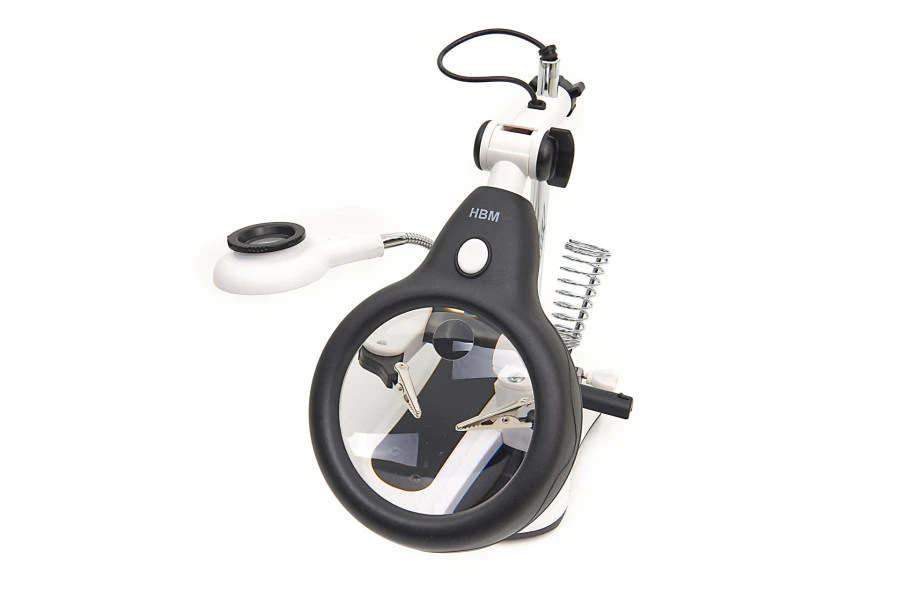 Over de HBM Deluxe 3e Handje Loupelamp met 4 x Loupe Vergroting en LED Verlichting