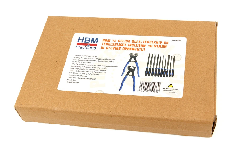 Als je tegels gaat leggen of glas gaat zetten, dan wil je die ook op maat kunnen knippen of snijden. Met deze HBM glas, tegelknip en -snijset haal je gereedschap in huis die daar zeer geschikt voor is. De set wordt geleverd met een snijtang waarmee je glas, porselein- en mozaïektegels kunt snijden, alsmede een kniptang om tegels te kunnen knippen of kleine stukken glas te verwijderen. Met de set van 10 veilen kun je vervolgens de scherp randjes en oneffenheden eraf veilen. Dit alles wordt geleverd in een handige opbergetui waarmee je deze complete set eenvoudig kunt opbergen en meenemen.