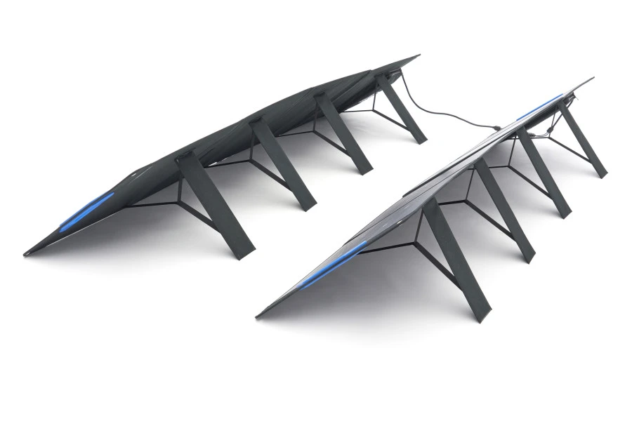 Dit spectaculaire in vier segmenten opvouwbare draagbare zonnepaneel levert als set maar liefst 400 Watt! Het is te dragen als een normale portfolio map en heeft prettig aanvoelende handvatten.
