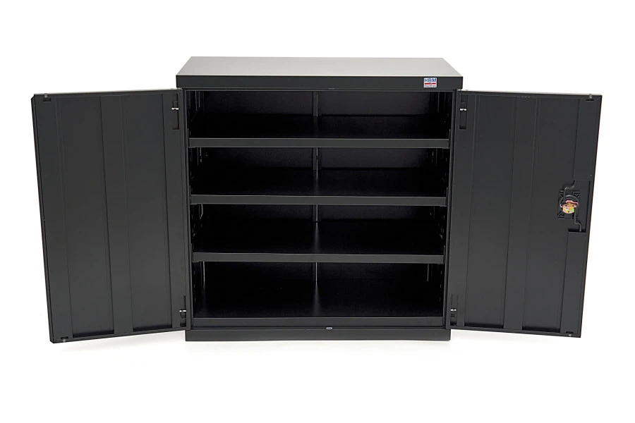 Dankzij deze gereedschapskast is het opbergen van verschillende soorten tools en materialen geen enkele uitdaging meer. De kast heeft een professionele uitstraling door zijn zwarte kleur, maar is daarbij ook erg functioneel. Door de verschillende planken heb je meer dan voldoende ruimte voor kleinere en iets grotere materialen, gereedschap en onderdelen. De kast is te combineren met andere gereedschapskasten of los te plaatsen.